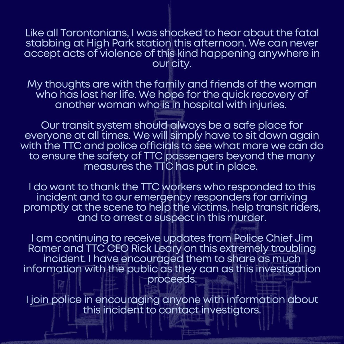 High Park Subway Stabbing Leaves Woman Dead Therecord Com